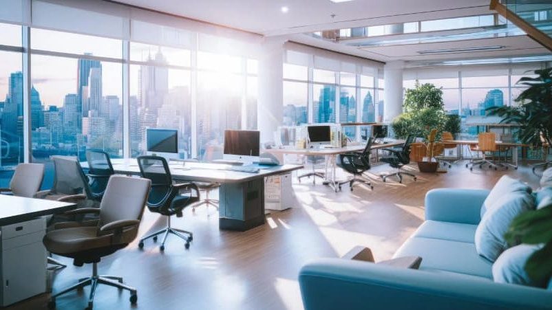 窓の向きと大きさ: 西日が強く入る、または全面ガラス張りのオフィスは冷房効率が落ちます。